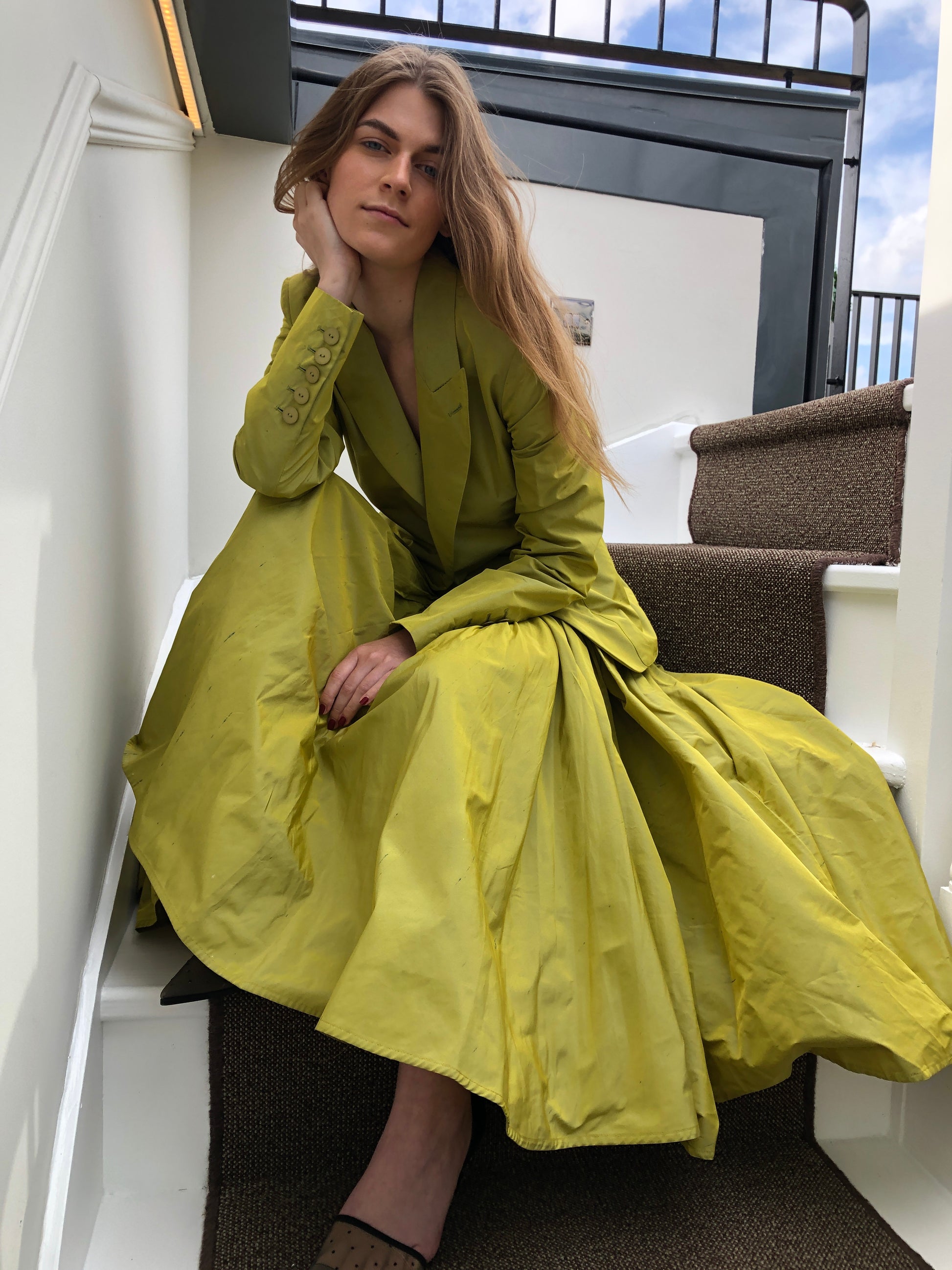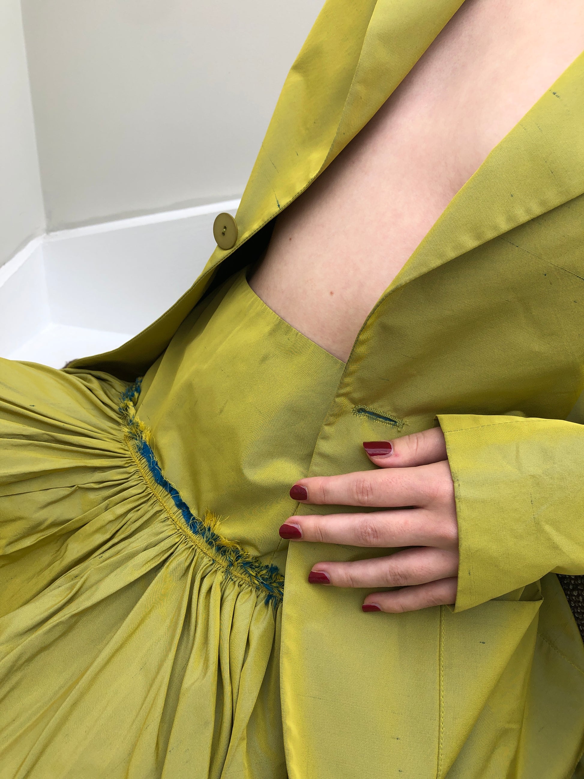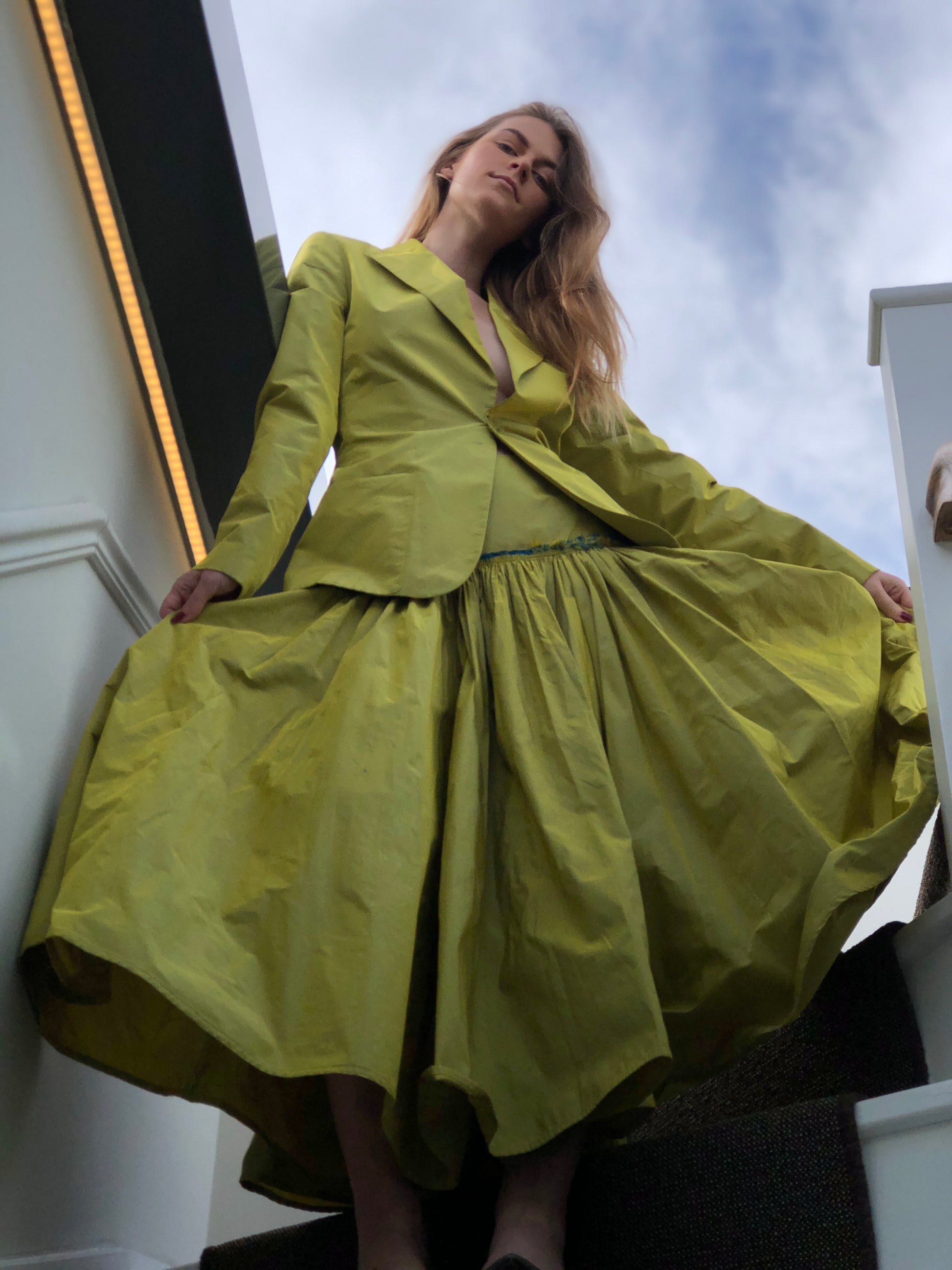 Beautiful 90s Jean Paul Gaultier two piece set in a lime Green color jacket & Skirt.