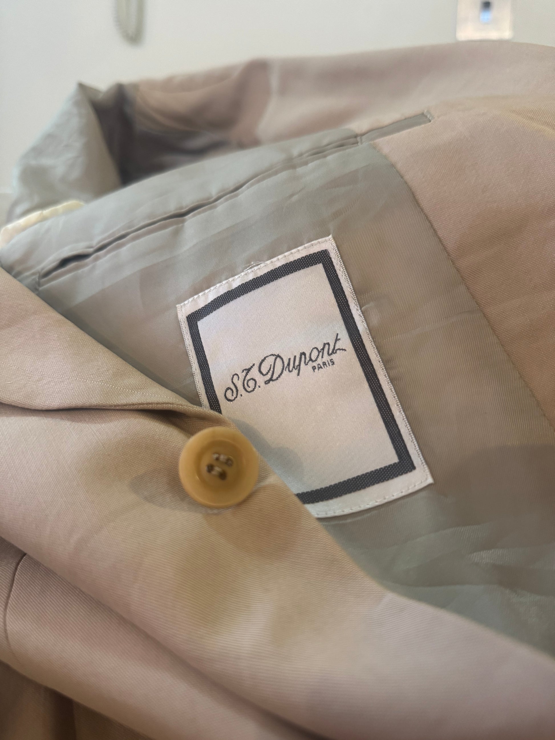 A refined S.T. Dupont blazer in a soft beige tone, featuring classic notch lapels, a structured silhouette, and clean tailoring. Timeless, polished, and effortlessly elegant — perfect for elevated day or evening wear.