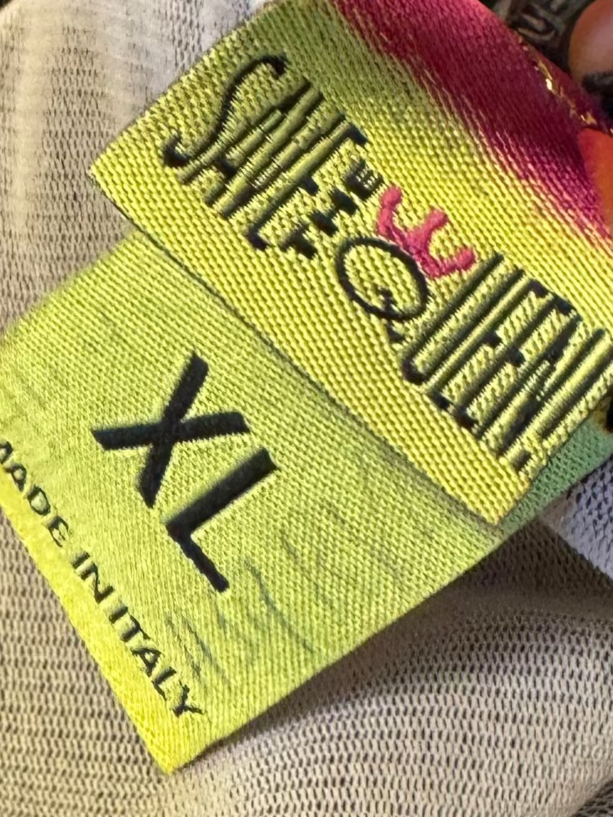 A signature Save the Queen dress featuring the label’s iconic layered mesh construction and intricate monochrome print inspired by ancient symbolism. Designed with a scoop neckline, tie-detail sleeves, and a flowing asymmetrical hem that moves beautifully on the body. Artistic, expressive, and unmistakably Save the Queen a true statement piece.