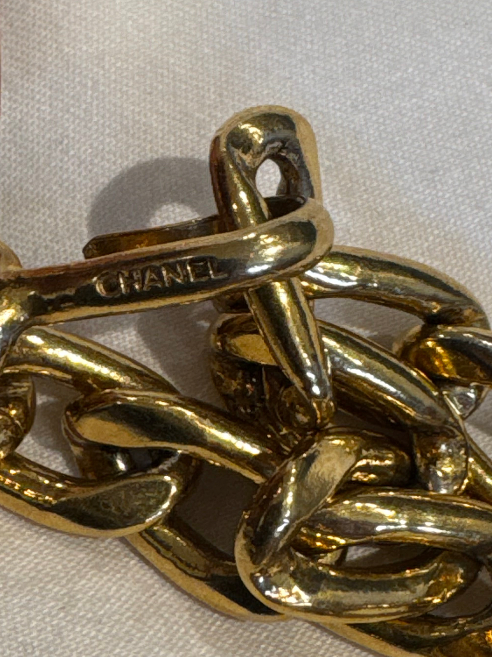 Elevate your edit with this statement CHANEL piece straight out of the archives. Crafted in the ’90s, it features chunky, interlinked gold-tone hardware stamped “CHANEL” on the clasp and crowned with a luxe black leather tassel that sways with every step. Wear it as a waist-skimming belt, over a blazer as a necklace, or looped through jeans for instant old-money glam.